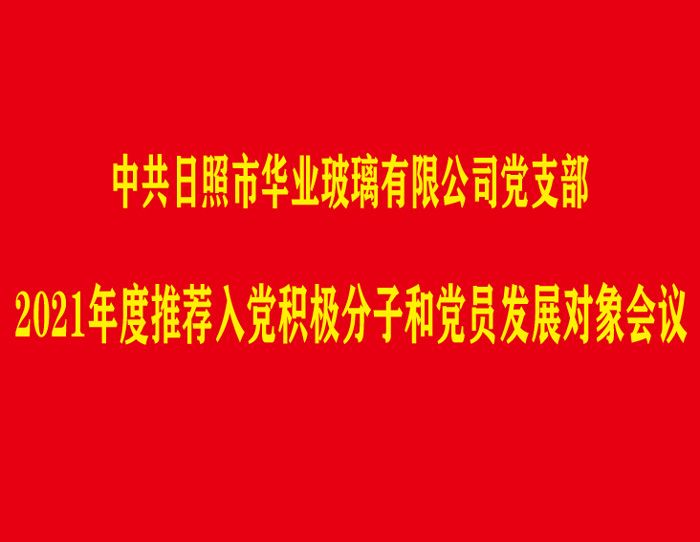 2021年是中國共產黨建黨100周年,為把更多的優(yōu)秀分子吸收到黨組織中來,激勵廣大員工把愛黨、信黨、跟黨走的政治熱情轉化為工作的強大動力,中共日照市華業(yè)玻璃有限公司黨支部高度重視,將2021年推薦入黨積極分子和發(fā)展黨員工作作為重要政治任務,抓緊抓實。