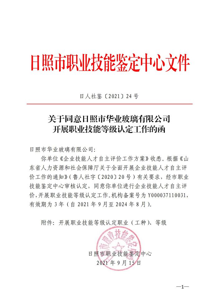 2021年9月15日,經(jīng)日照市職業(yè)技能鑒定中心審核認定,同意我公司進行企業(yè)技能人才自主評價,開展職業(yè)技能等級認定工作。