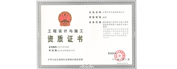 華業(yè)玻璃獲得“建筑幕墻工程設(shè)計與施工一體化”貳級資質(zhì)、“建筑裝飾裝修工程設(shè)計與施工一體化”貳級資質(zhì)、“金屬門窗工程專業(yè)承包叁級資質(zhì)”。