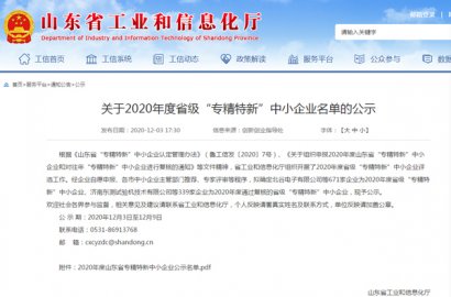 根據(jù)《山東省“專(zhuān)精特新”中小企業(yè)認(rèn)定管理辦法》(魯工信發(fā)〔2020〕7號(hào))、《關(guān)于組織申報(bào)2020年度山東省“專(zhuān)精特新”中小企業(yè)和對(duì)往年“專(zhuān)精特新”中小企業(yè)進(jìn)行復(fù)核的通知》等文件精神,省工業(yè)和信息化廳組織開(kāi)展了2020年度省級(jí)“專(zhuān)精特新”中小企業(yè)評(píng)選工作。經(jīng)主管部門(mén)推薦、專(zhuān)家評(píng)審等程序,確定我公司為2020年度省級(jí)“專(zhuān)精特新”中小企業(yè)。